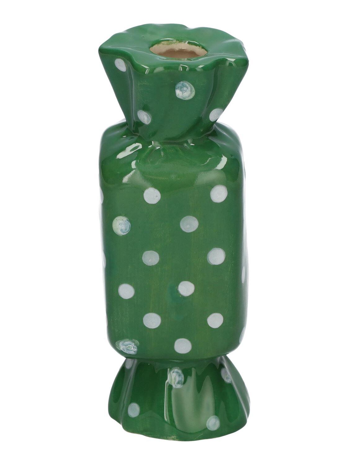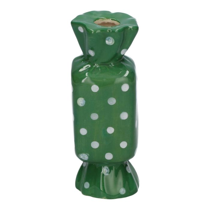 Vase à fleurs carré en forme de bonbon AMIEL en céramique, à pois, vert-blanc, 4,5x4,5x11,5cm