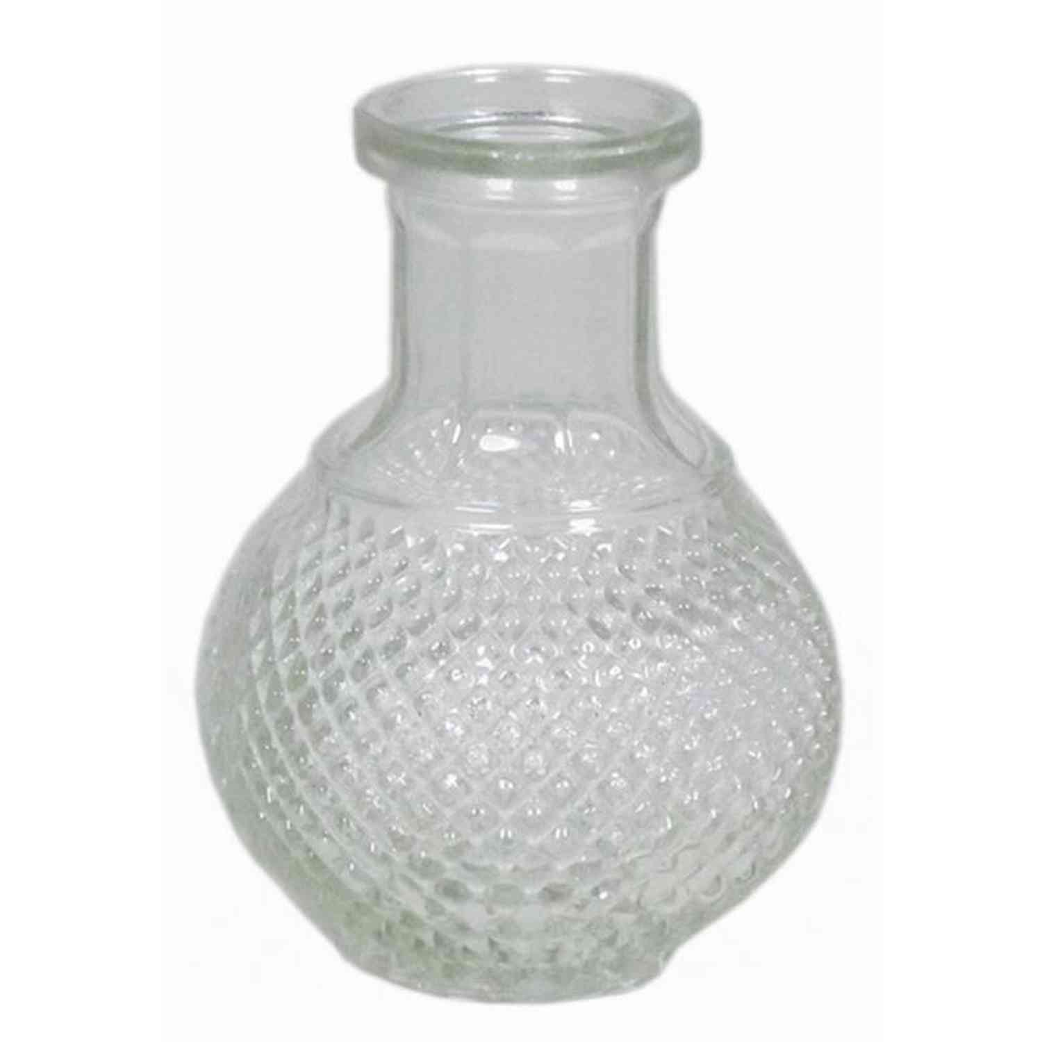 Vase à fleurs DONKA, motif losange fin, boule/rond, transparent, 11,5cm, Ø4,5cm/Ø8cm