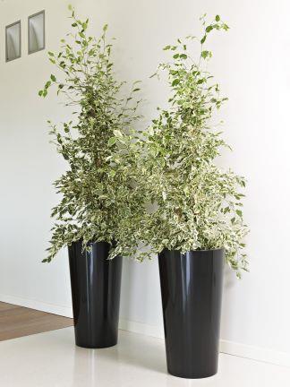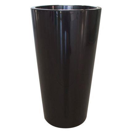 Vase à plantes haut et rond THERESITA en plastique, avec insert, kit d'arrosage, noir,75cm, Ø40cm