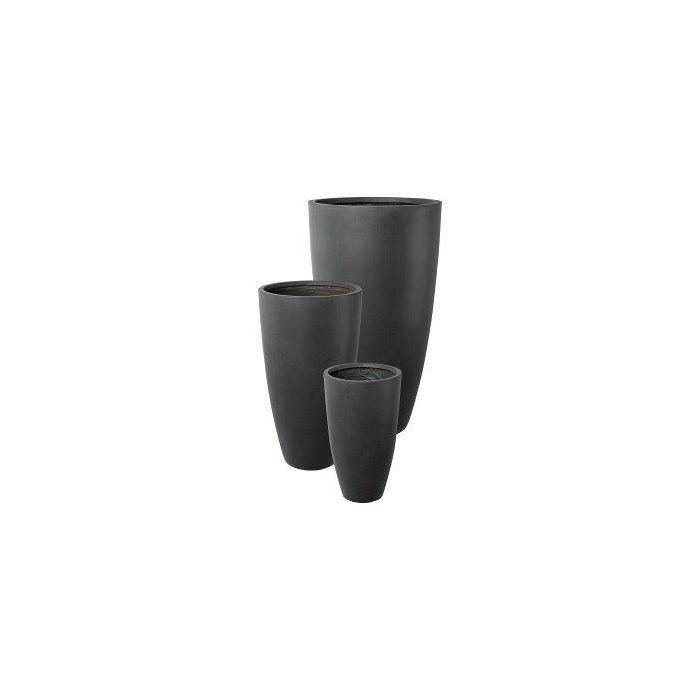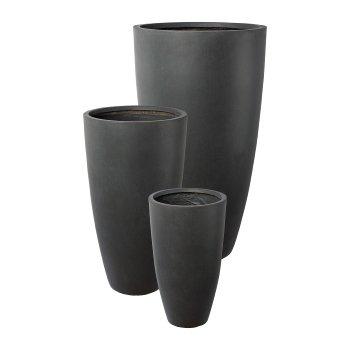 Vase à plantes rond KIRIMA, 3 pièces, fibre de verre, anthracite, 34x60cm, 44x80cm, 54x100cm