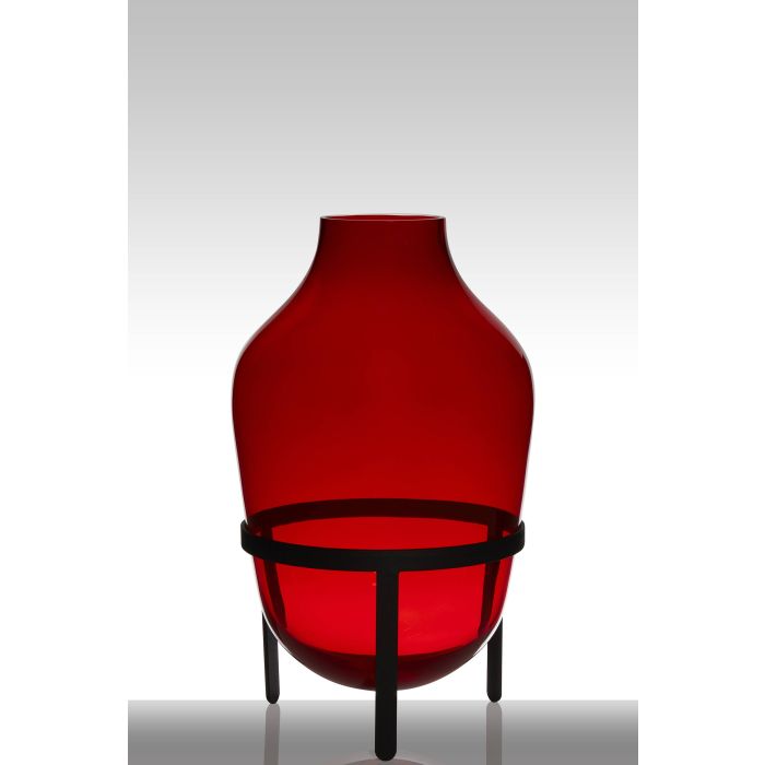 Vase à poser au sol en verre CAMILO sur pied, conique/rond, rouge, 50cm, Ø29cm