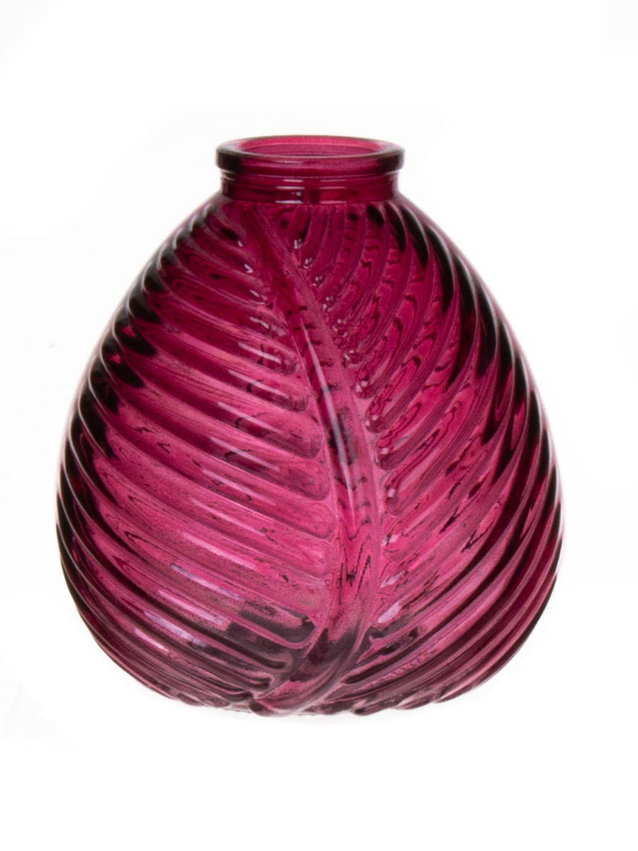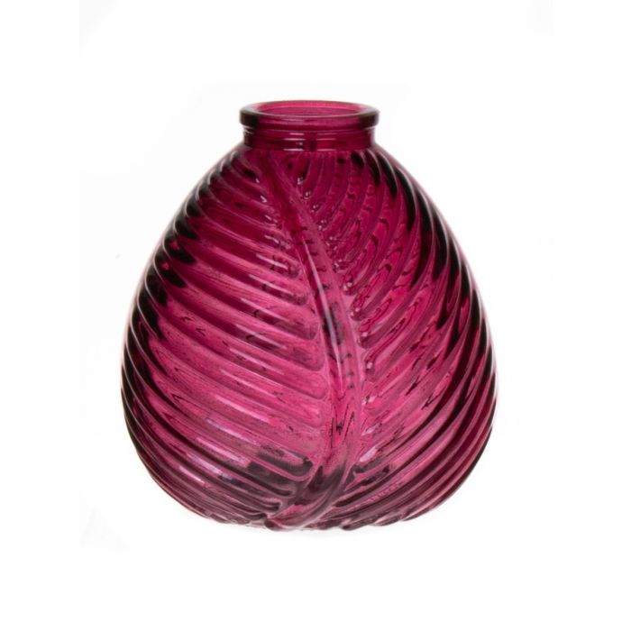 Vase bouteille NELLOMIO avec structure de feuille, verre, fuchsia-transparent, 13cm, Ø12cm
