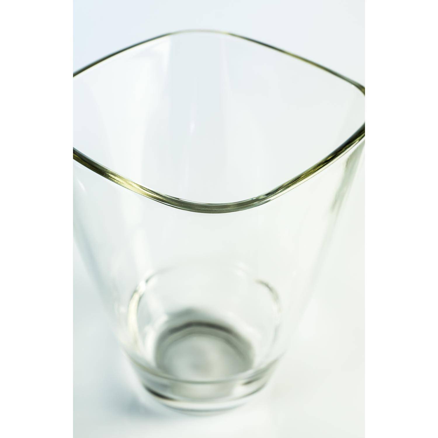 Vase carré YULE en verre massif (5 mm d’épaisseur) transparent par INNA Glas. Le dessus de ce joli vase conique est de forme carrée avec des angles arrondis et la base circulaire. Avec ses 17 cm de haut et ses 13 cm de côté (au-dessus) cet élégant vase embellira immédiatement votre table.