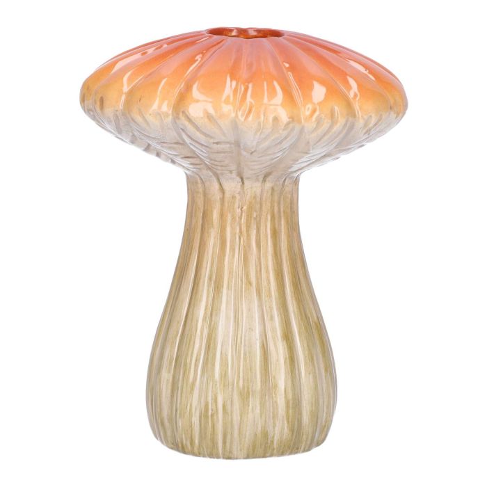 Vase décoratif en céramique PULCHERIA, en forme de champignon, rainures, orange-beige, 13cm Ø10cm
