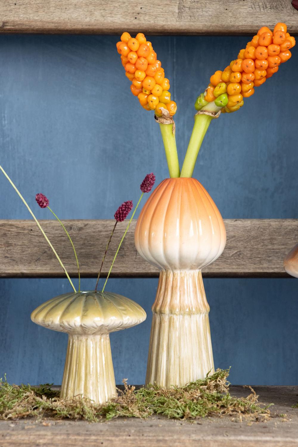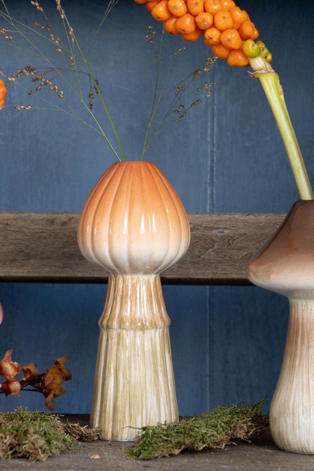 Vase décoratif RADOMILA, céramique, en forme de champignon, rainures, orange-beige, 18cm, Ø7,4cm