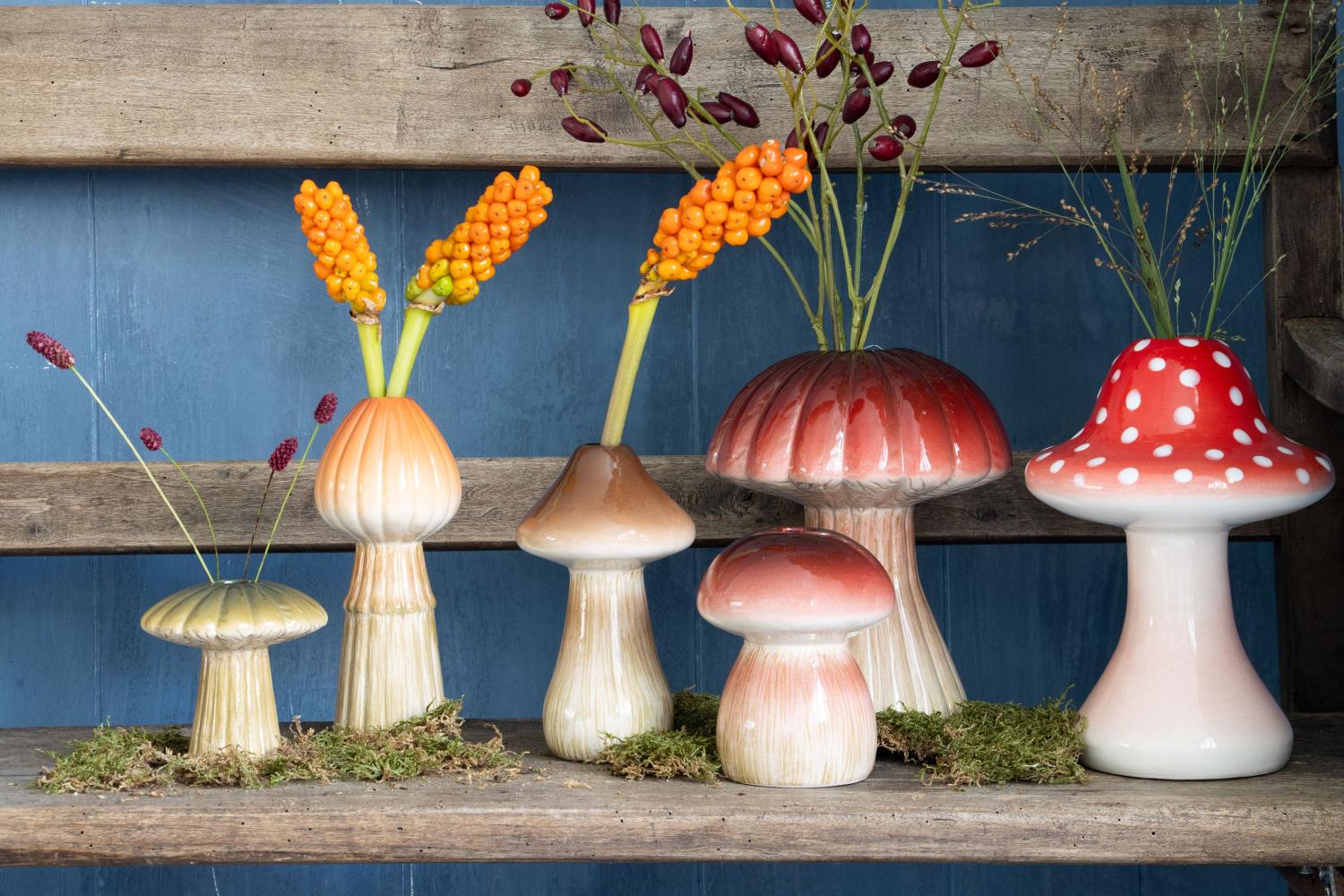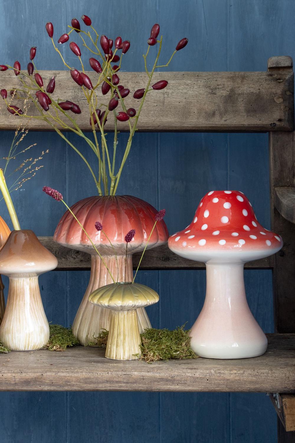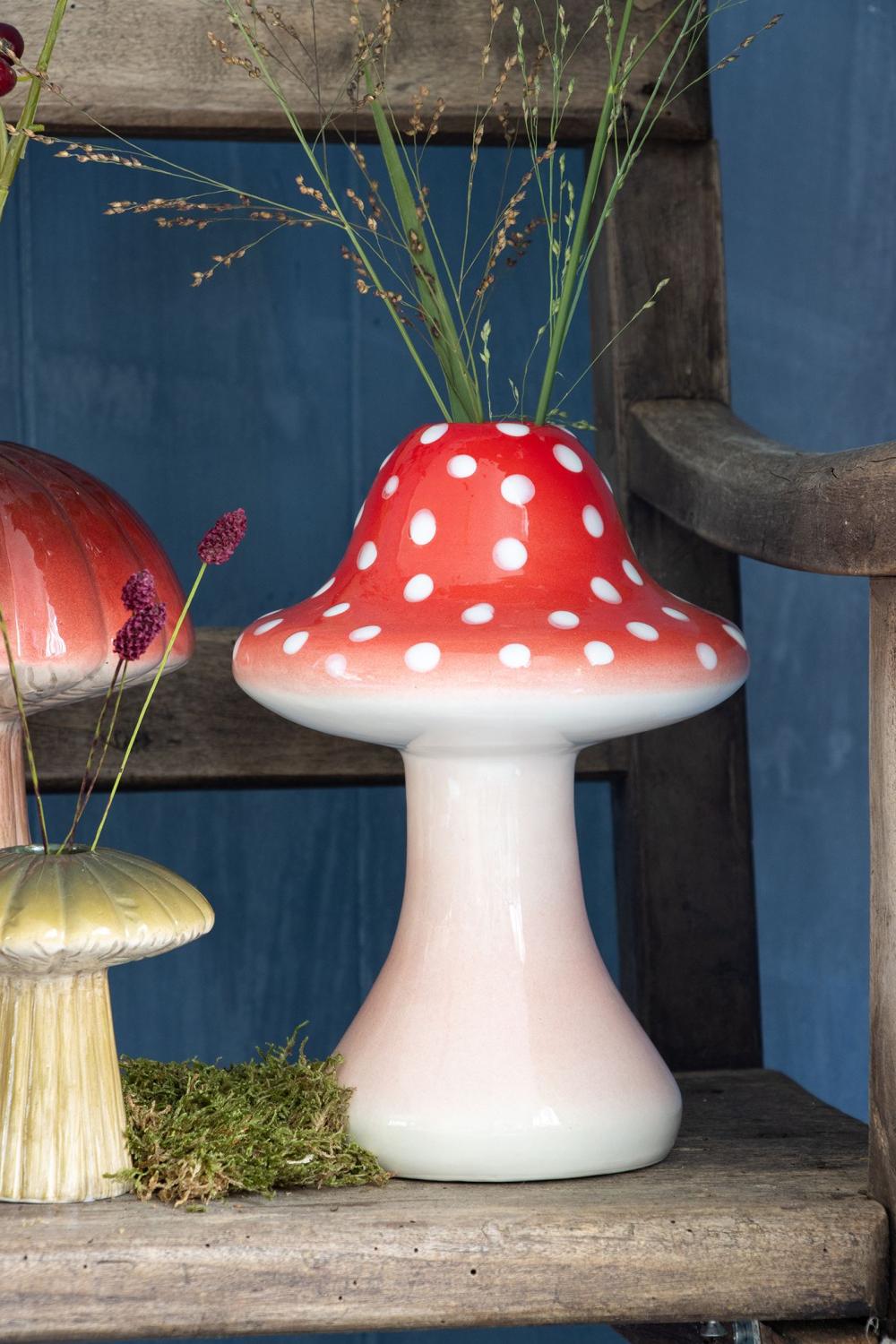 Vase en céramique RICHLINDE, amanite tue-mouche, rouge-blanc, 21cm, Ø15cm
