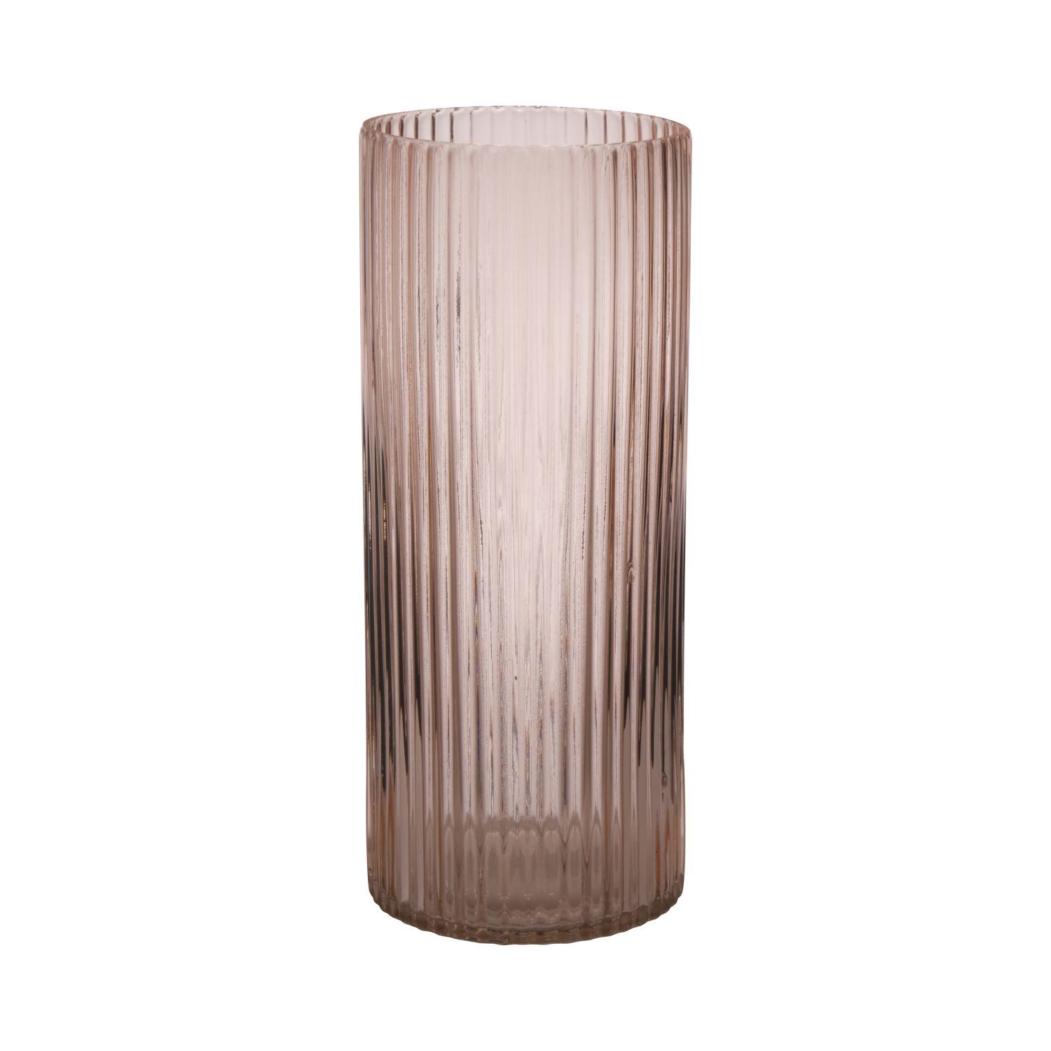 Vase en verre tendance SORCHA avec rainures, rose pâle-transparent, 30cm, Ø12,5cm