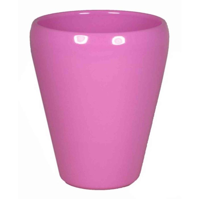 Pot pour orchidée NAZARABAD en céramique de couleur rose fuchsia avec un diamètre d'environ 14 cm et une hauteur d'environ 17 cm.