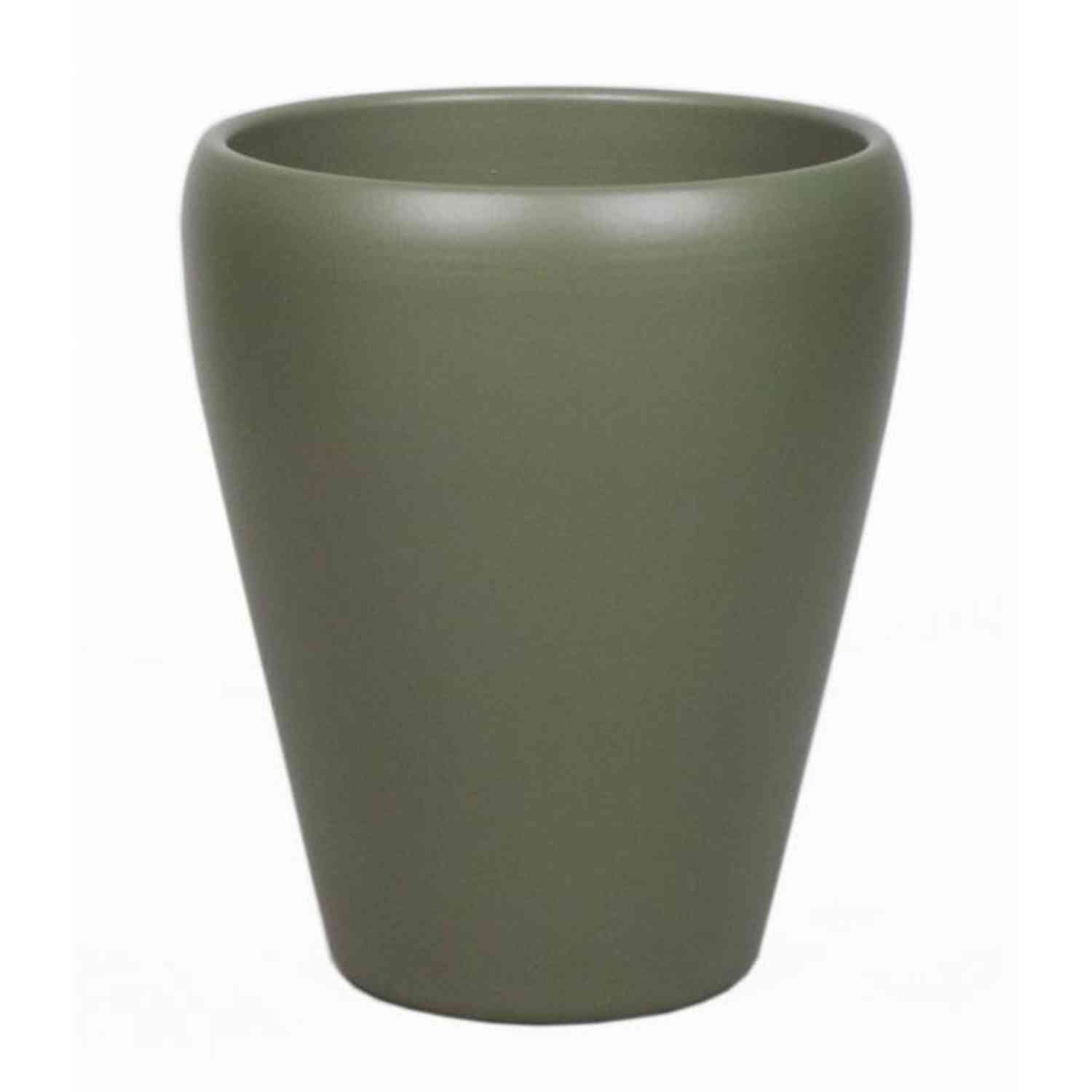 Pot pour orchidée NAZARABAD en céramique de couleur vert olive avec un diamètre d'environ 14 cm et une hauteur d'environ 17 cm.