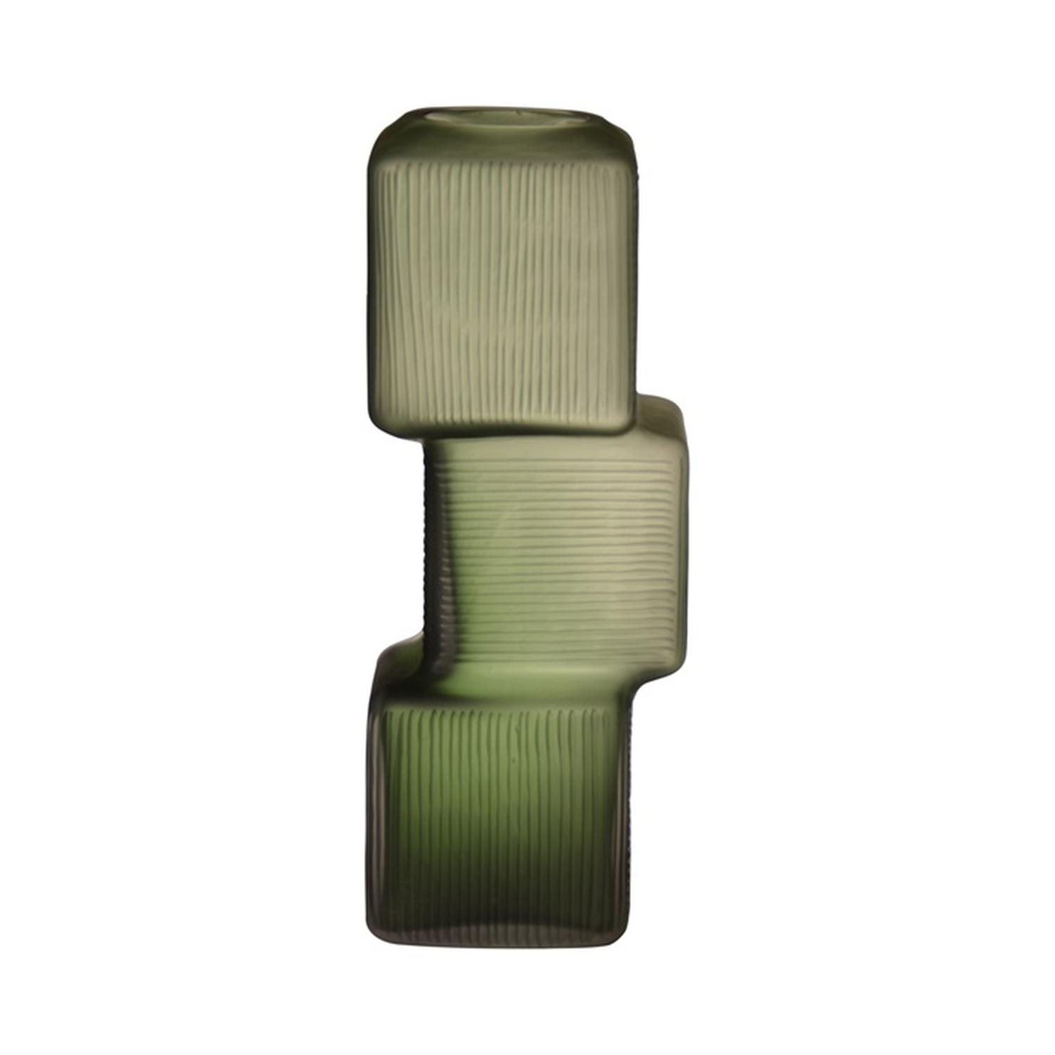 Vase soliflore RAELYN, verre, effet tetris, vert, 37cm, Ø14,5cm
