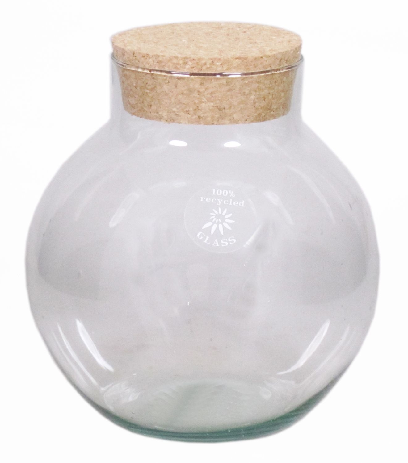 Vase terrarium en verre GASPAR, avec couvercle en liège, transparent, 27cm, Ø14cm/Ø25cm
