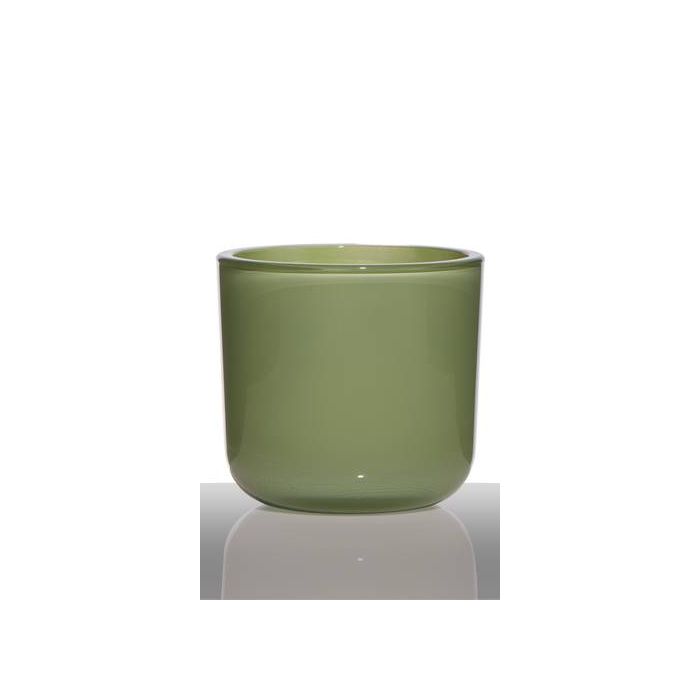 Verre à bougie NICK, cylindre/rond, vert herbe, 13cm, Ø14cm